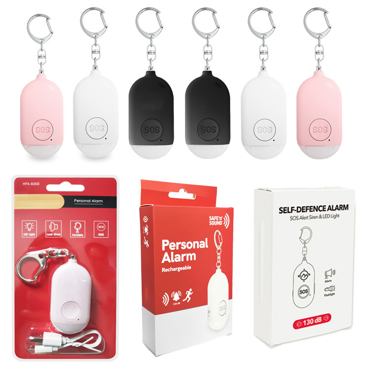 | Име на производ | Надополнување 130dB Личен аларм за итни случаи со LED батериска ламба Личен безбедносен аларм Приврзок за клучеви |